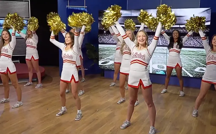 The Cathedral Catholic High School Cheer team joined CBS 8 to celebrate their school’s CIF San Diego Open Division Football Championship win.