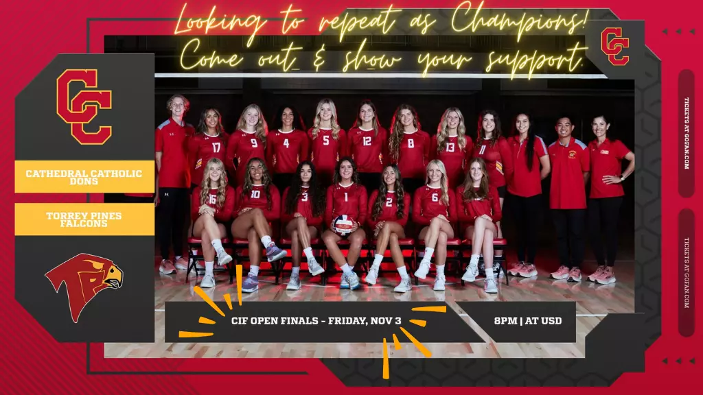 With their 3-1 (21-25, 25-5, 25-13, 25-17) victory on Tuesday, October 31st vs The Bishop’s School, the #6 nationally ranked girls’ volleyball team return to the title game in a rematch of last year’s final against Torrey Pines High School. The championship game will take place at USD’s Jenny Craig Pavilion at 8pm. Be sure to secure your tickets at GoFan.co prior as no tickets will be sold onsite.Â