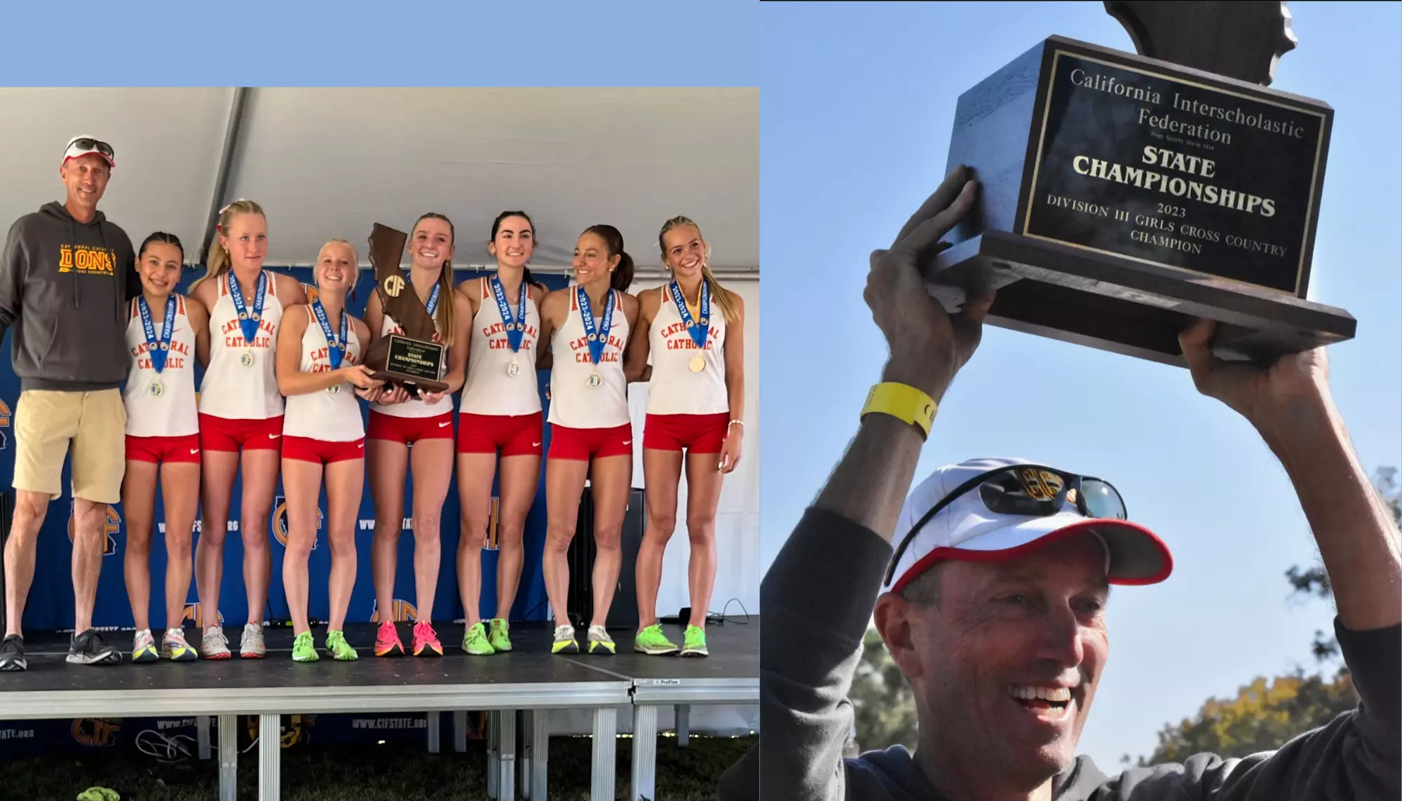 As often happens at the state meet, the official results weren’t immediately forthcoming after the race, so after a very nervous 20 minutes, the Dons were finally able to celebrate the school’s first girls’ title, joining the 2016 boys team.