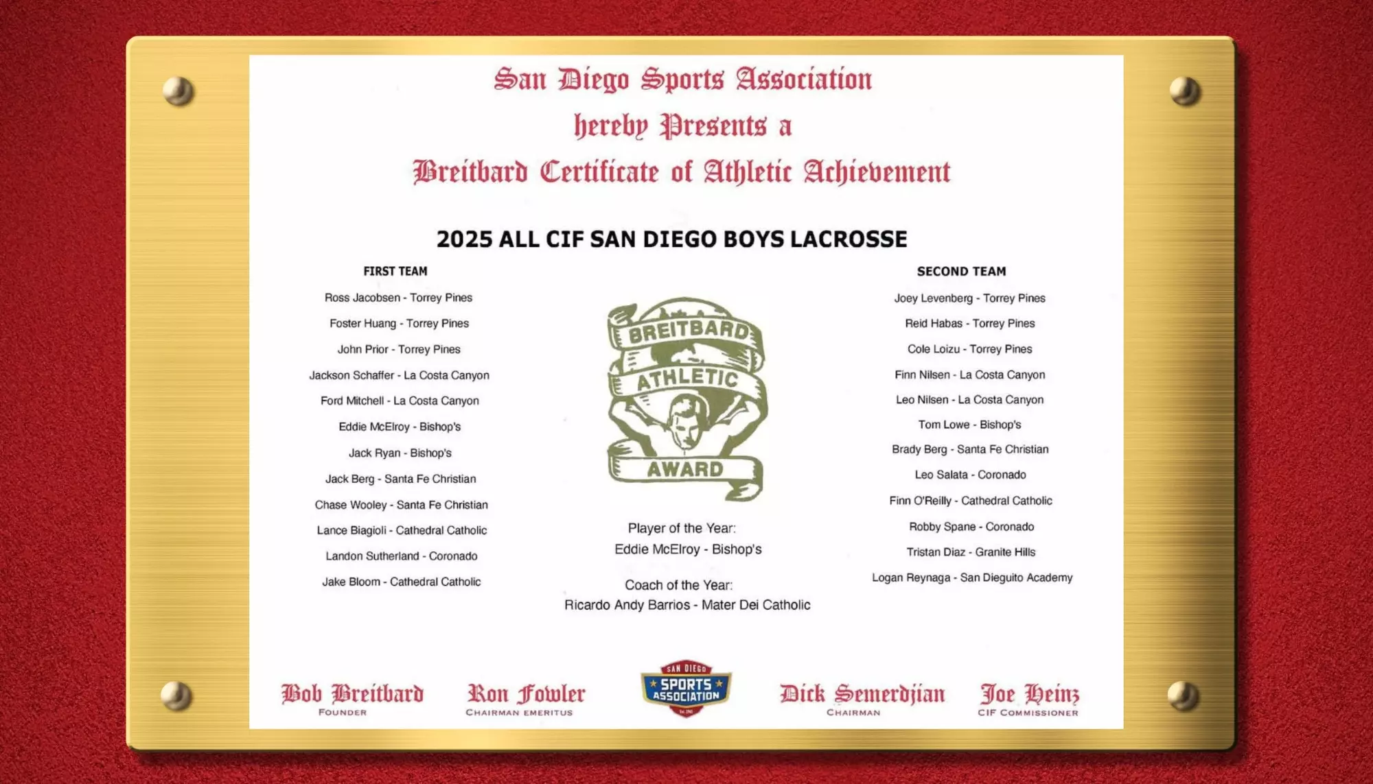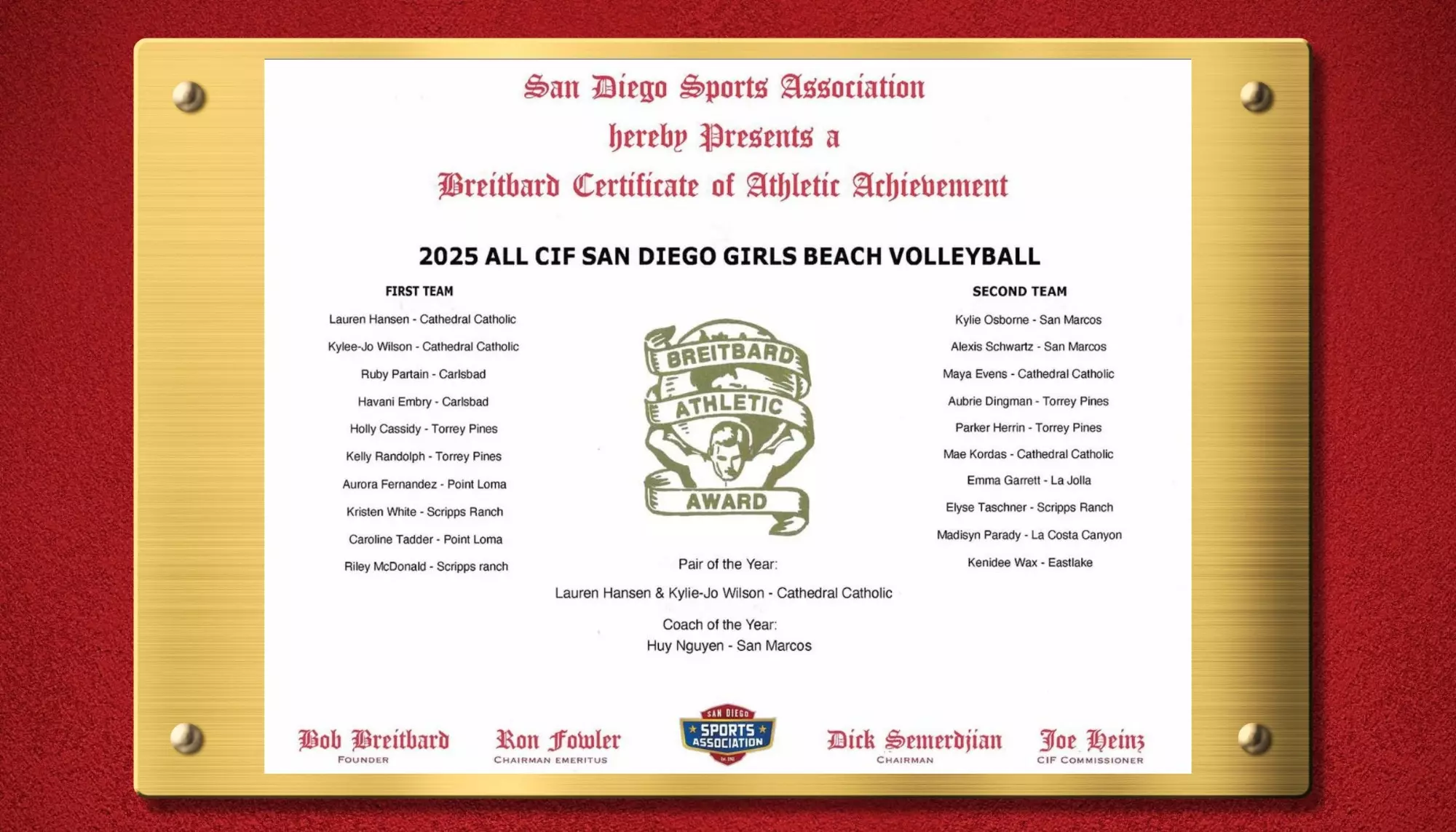 We are incredibly proud of our athletes, coaches, and teams for their commitment to excellence. Your hard work and accomplishments continue to set the standard across San Diego.